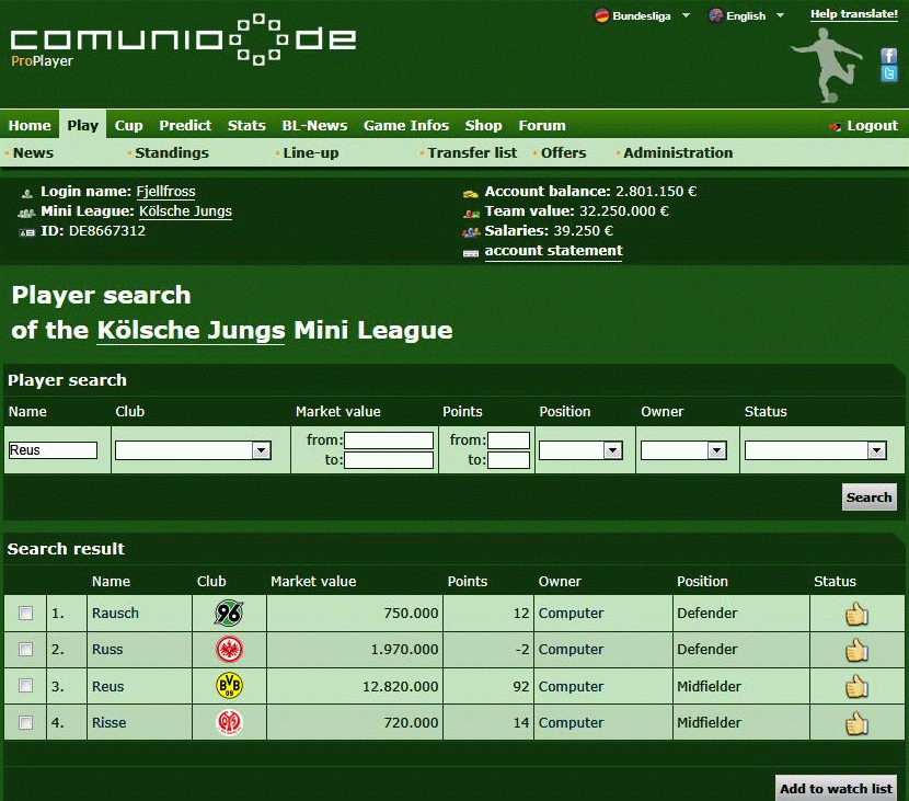 Words are not enough for you? Then try the Comunio.fr Pro Player features yourself getting a guest account!